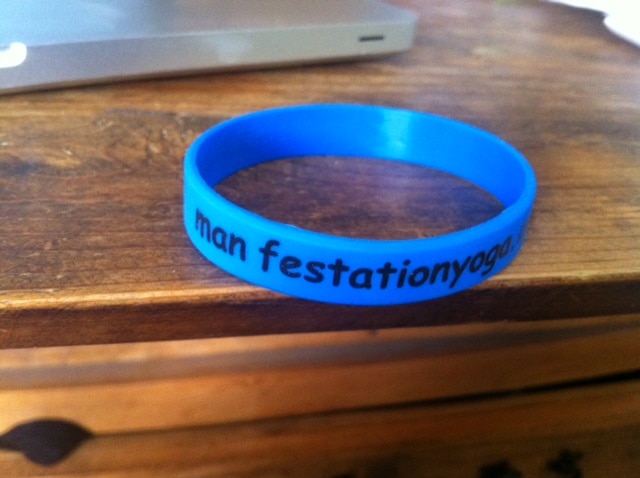 I have these bracelets. You probably have one. They are cobalt blue and they say: What Are You Manifesting? on one side. The other, and more important, from a business standpoint-side: Manifestationyoga.com.