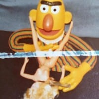 They leave behind: photographs of Burt from Sesame Street smoking a cigarette and holding a bottle of booze, a Barbie doll spread eagle in his face, an open shirt and a loose tie. My father took that picture. He set my Burnie doll up (I called him Burnie because I didn’t know if he was Burt or Ernie from Sesame Street, but looking at the picture I can now see it’s Burt) like that in what I now think may have been a self-portrait. So the dead leave portraits of themselves.