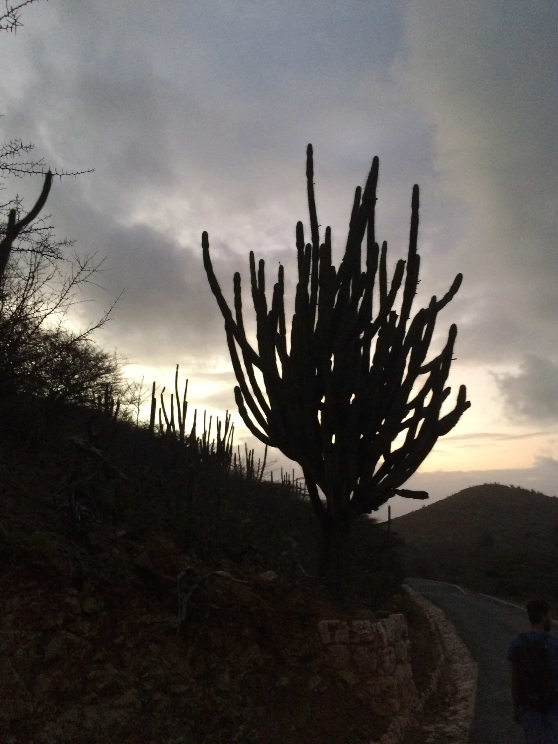 The hike was 5 hours long. We started before the sun came. Rooi Tambu, a long trail through a dry riverbed within the Arikok National Park of Aruba. I poured coffee into a plastic cup and spilled it all over myself in the car. The sun was still not up when we began.