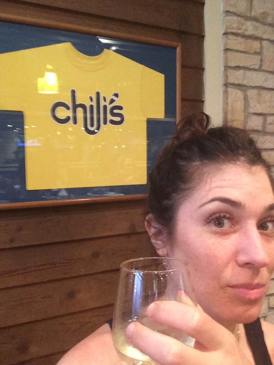 In Ft. Lauderdale I somehow have to go through security. Again. Fourth time in one day. I am so cold that I feel like one of those women who ask for lemon water. I am freezing. I buy a pillow and blanket in the airport shop and attempt to find a place to eat. This brings me to Chili’s. The Ft. Lauderdale Airport really does blow. (Ha ha blow jobs again.)