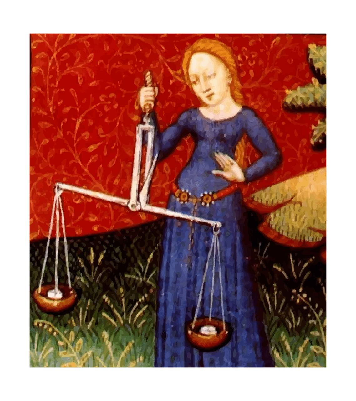 She wants to win, and let’s say she does. She tips the scale, and finally, after all that fighting, she can rest on her laurels and await her prize. She waits in her little gold dish, tired and depleted, thinking what on earth could be worth all this conflict. She waits, rehearsing a gracious acceptance, and she wishes she had someone to share it with. She can hear the others from across the long arm of the balance scale, laughing and talking as if nothing were lost. While she’s waiting, she begins to question the very worth of this victory; if she’s so triumphant why is she alone? She wonders how winning at the other’s expense could be considered a victory at all.