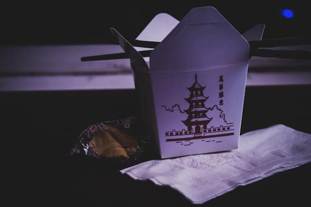 Neither of you finishes your lunch. Dad asks for a doggy bag and the waitress brings containers for the leftovers. You scoop the tiny remains of his leftover pad thai into one container and massaman curry into another.