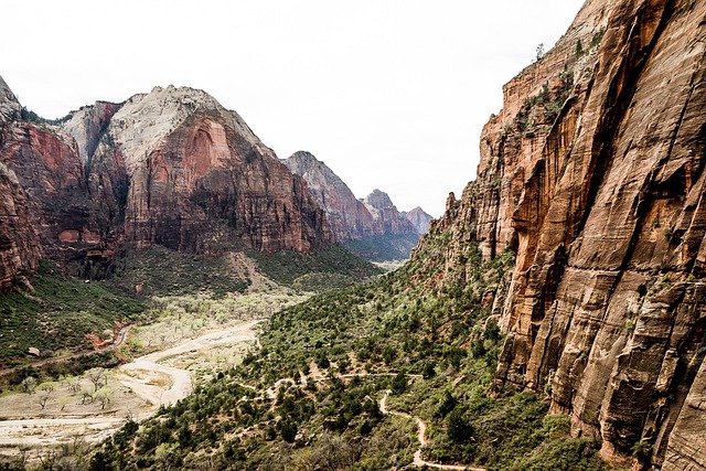 Sitting on top of the cliff, enjoying our applesauce packs and protein bars, we overlooked the entire Zion Canyon. To our left, a steep drop-off revealed the Virgin River snaking through the canyon, tracing its path toward the narrowest portion of the park. Straight ahead stood the majestic Angel’s Landing—a narrow strip of land with sheer drop-offs on both sides, leading to a peak so high and narrow it seemed only an angel could land on it. To our right, the canyon opened below us into a grassy meadow, flanked by massive canyon peaks on either side, forming the shape of a wide bowl. From this viewpoint, the distinct red and white layers of the canyon walls were easier to notice, rising all the way to the top where a light dusting of snow laid.